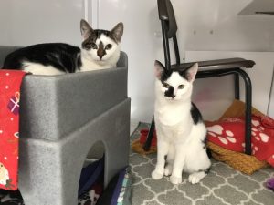 When Clare and her family‘s beloved 18-year-old cat, Charlie (who they adopted when he was just five months old) died, they really missed him and the house felt empty. Although she felt guilty even thinking about looking for another pet, Clare came to Mayhew with her 12-year-old daughter to see if a cat might choose them. It didn’t take long for two cheeky and playful boys to introduce themselves!